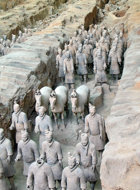 three pits, containing over 8,000 soldiers, 130 chariots with 520 horses,
